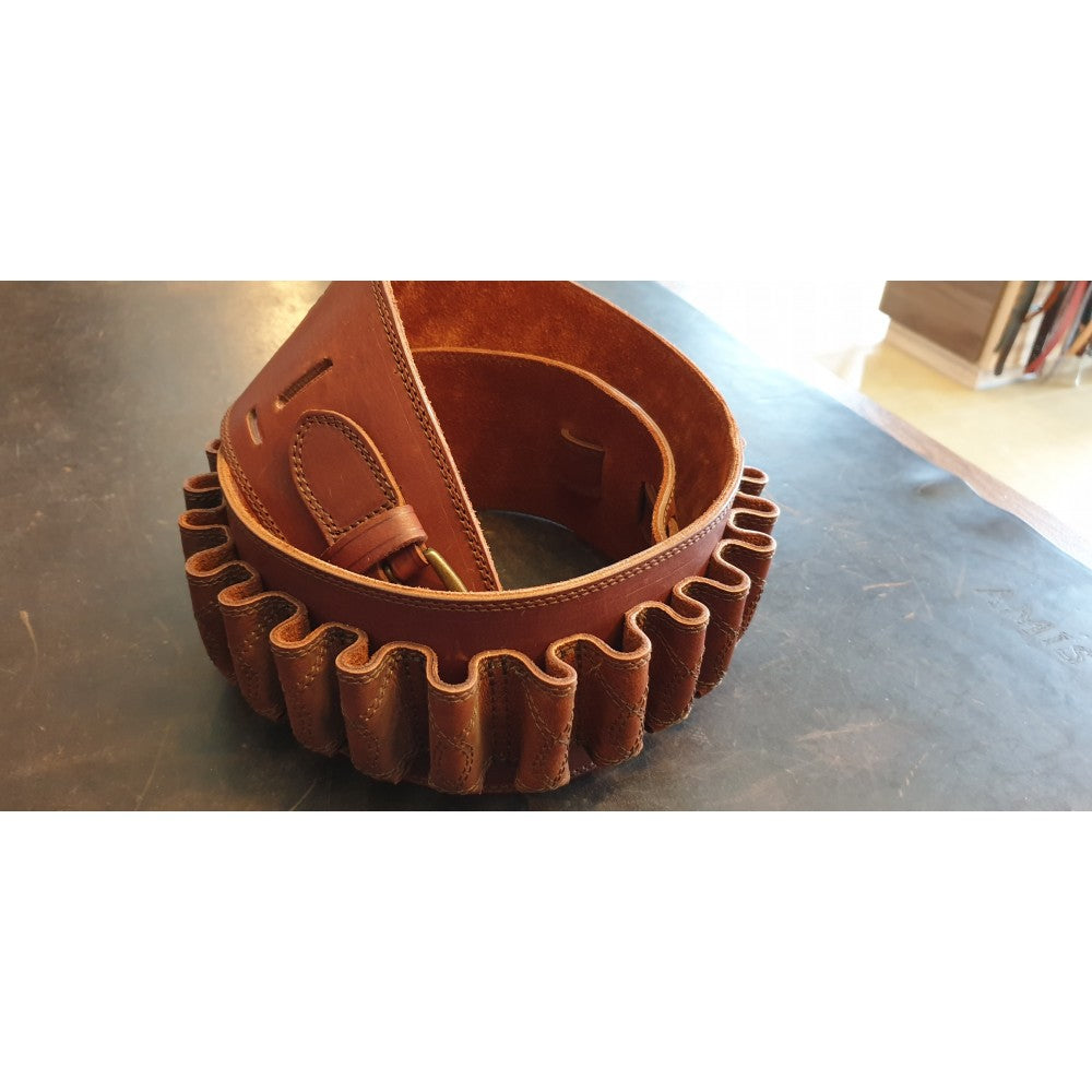 Cartusiera din piela naturala de bovina de 2,5mm. Loc pentru 25 cartuse cu alice. Reglabila. Disponibilă în mai multe calibre, la plasarea comenzii specificați în observații varianta dorită. Fabricata de Tapel in Romania.