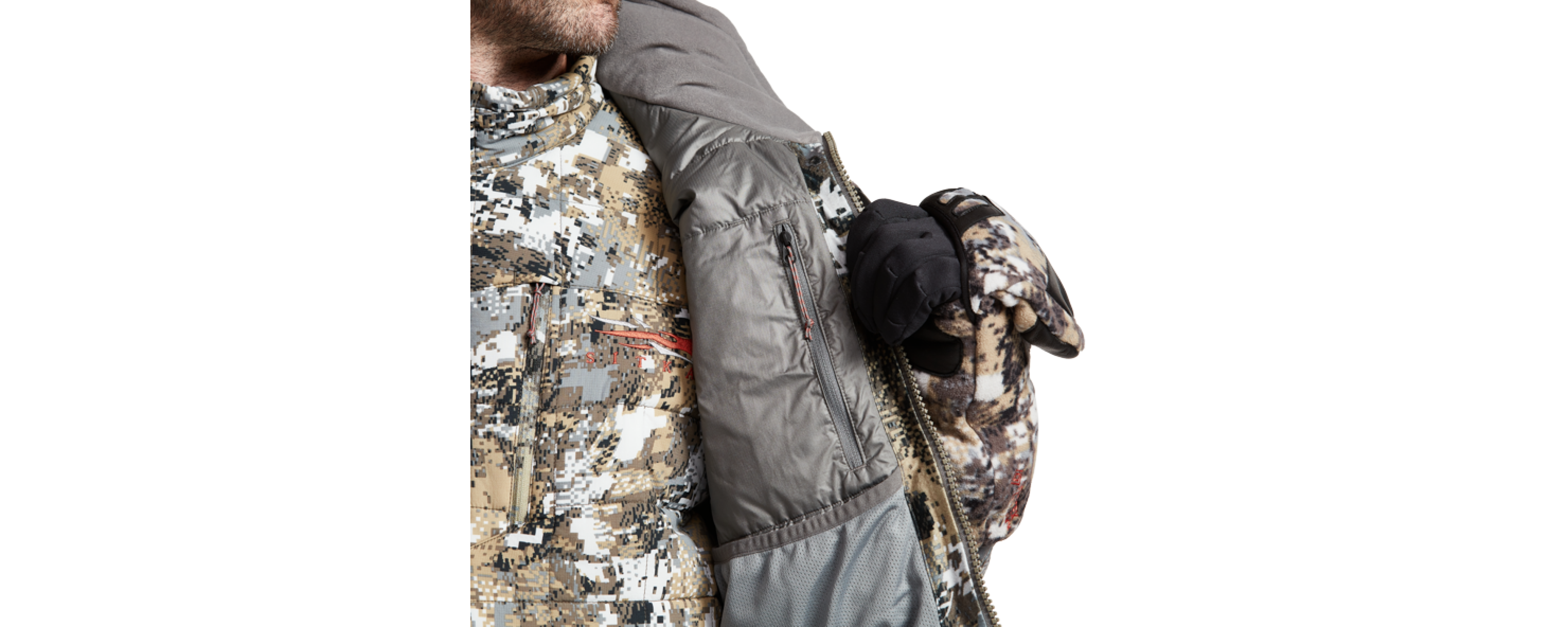 - Izolația ușoară high-loft (35% reciclată) este infuzată cu aerogel silica, un material aproape lipsit de greutate, care este compus din peste 95% aer și acționează ca izolație termică suplimentară.