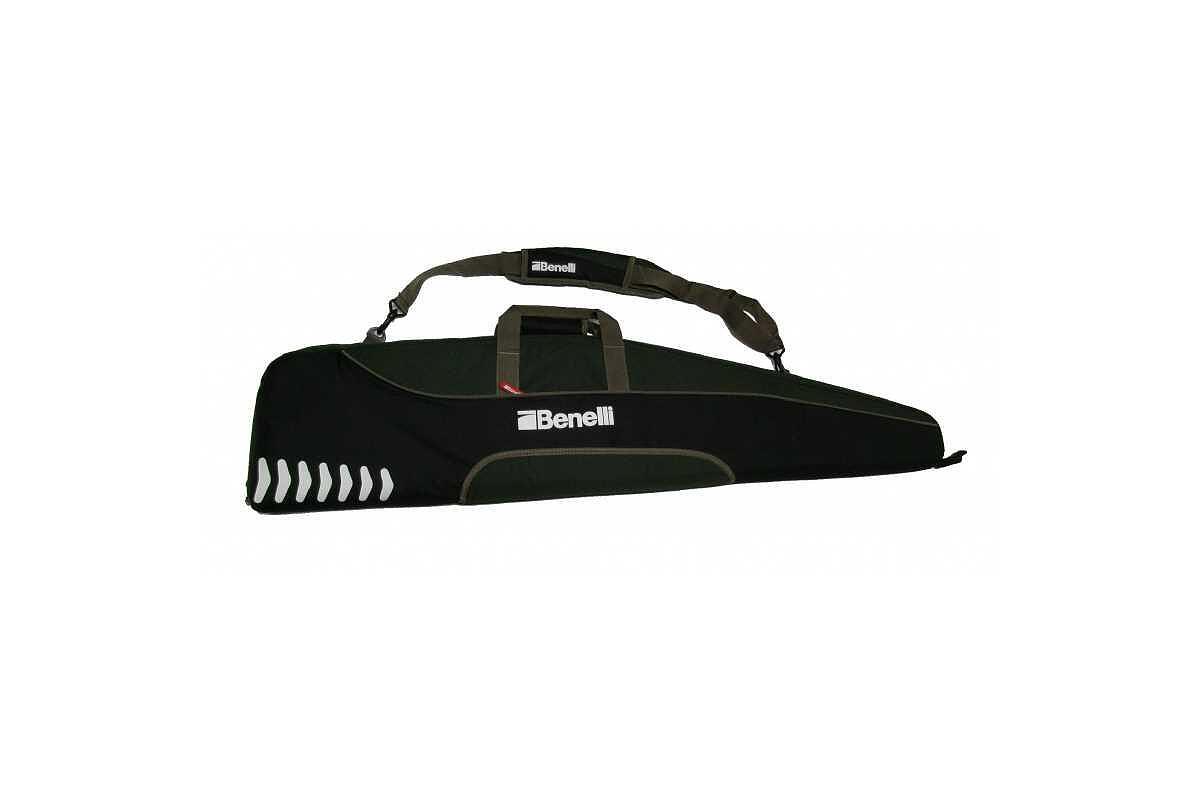 Husa Benelli pentru carabine bolt action sau semiautomate. Material textil. Culoare: verde/negru. Buzunar exterior. Manere si curea de umar. Dimensiuni: 124x25x8 cm.