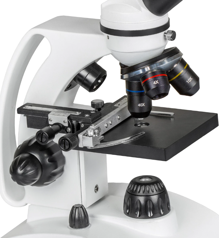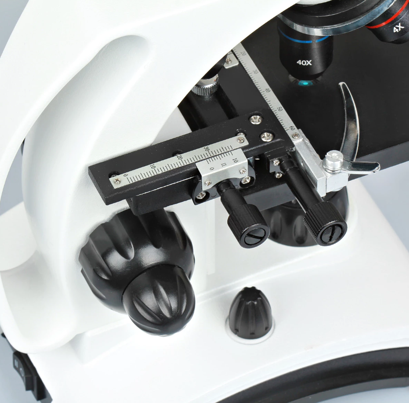 Spre deosebire de multe microscoape simple, BioLight 300 se distinge prin șuruburile de focalizare grosier și fin, precum și un mecanism de glisare (cu scară marcată).