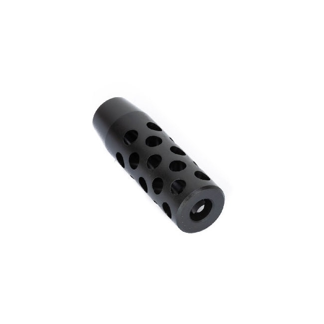 Muzzle Brake Sako/Tikka M 14x1. Montarea unui muzzle brake va face ca gazele sa paraseasca teava prin acele orificii si nu prin gura tevii, asadar ele vor fi dirijate in lateral si nu inainte. Avantajele folosirii unui muzzle brake: – scade considerabil reculul – cu aprox. 50%; – creste precizia. Pentru tevi cu diametru de 16,5 mm. Pentru arme in calibru max. .30. Culoare: negru lucios. Se recomada folosirea castilor pentru trageri repetate. Fabricat de Sako.