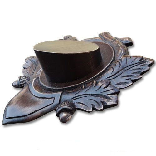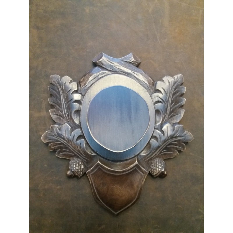 Panoplie pentru craniu de ras. Dimensiuni totale: 25x22 cm. Dimensiuni utile:13,5x10,5 cm. Inaltime butuc: 7 cm. Material: lemn de tei. Fabricat in Romania.