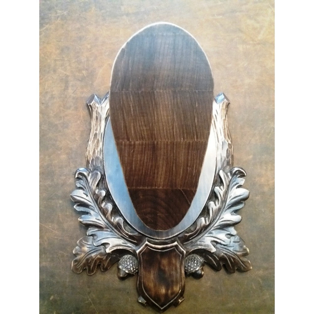 Panoplie pentru craniu de muflon. Dimensiuni totale: 38x26 cm. Dimensiuni utile: 25,5x12 cm. Inaltime butuc: 13 cm....