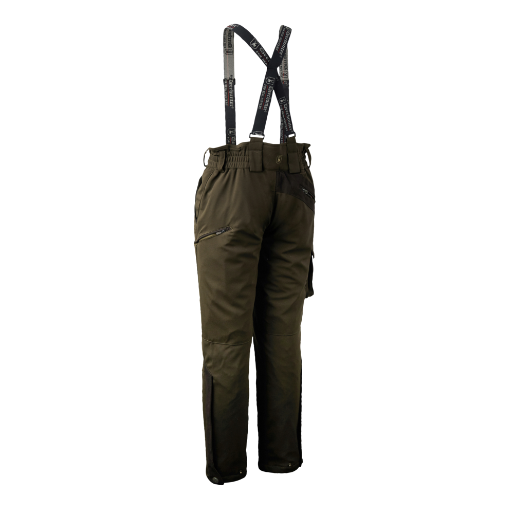 Pantaloni de vanatoare Muflon cu bretele detasabile Pantalonii de vanatoare de Muflon fac parte din setul de vanatoare de top Deerhunter cu membrana Deer-Tex, care va protejeaza de conditiile meteorologice extreme. Pantalonii se potrivesc bine, sunt prevazuti cu un buzunar pe coapse - si captusiti cu izolatie Thinsulate ™ 3M ™.