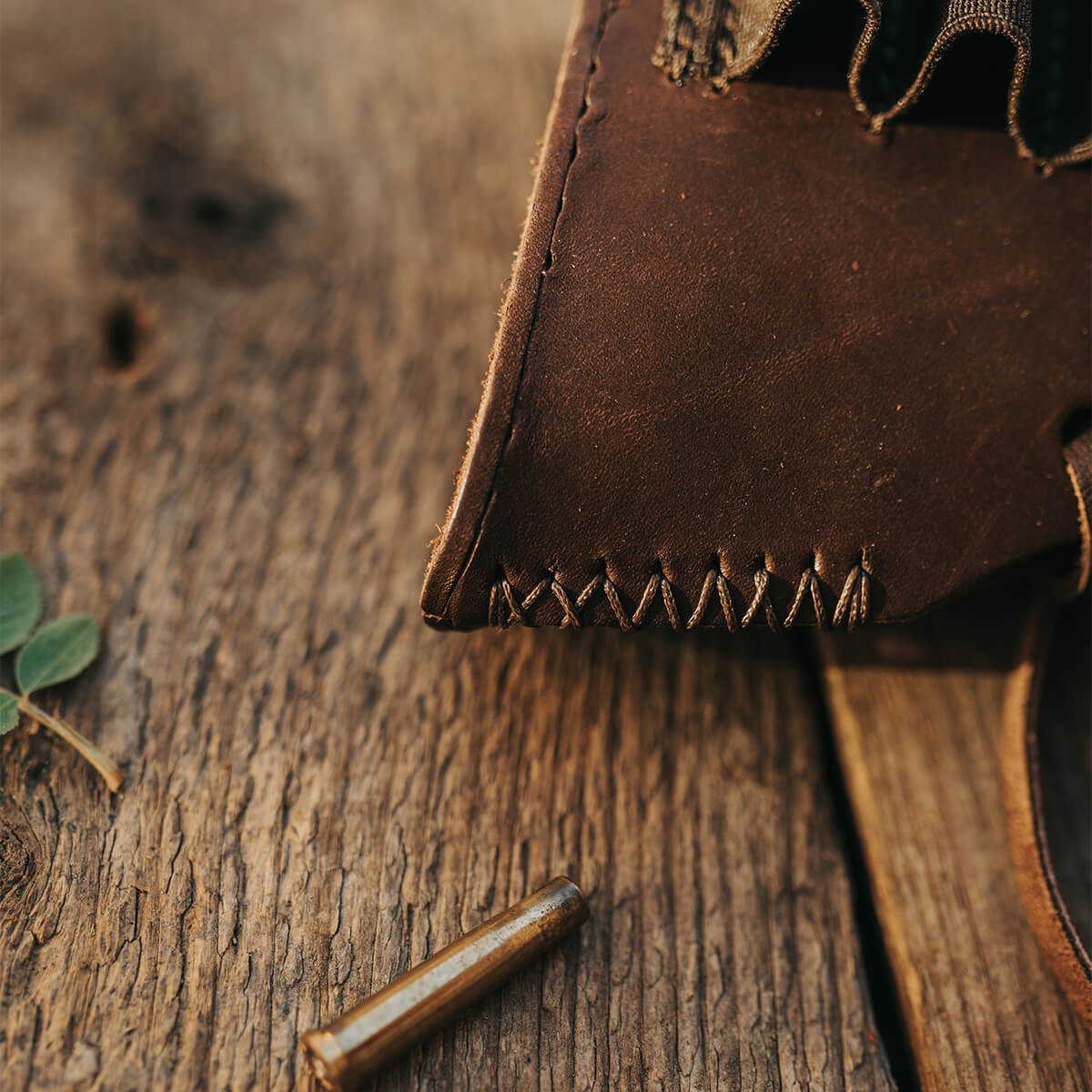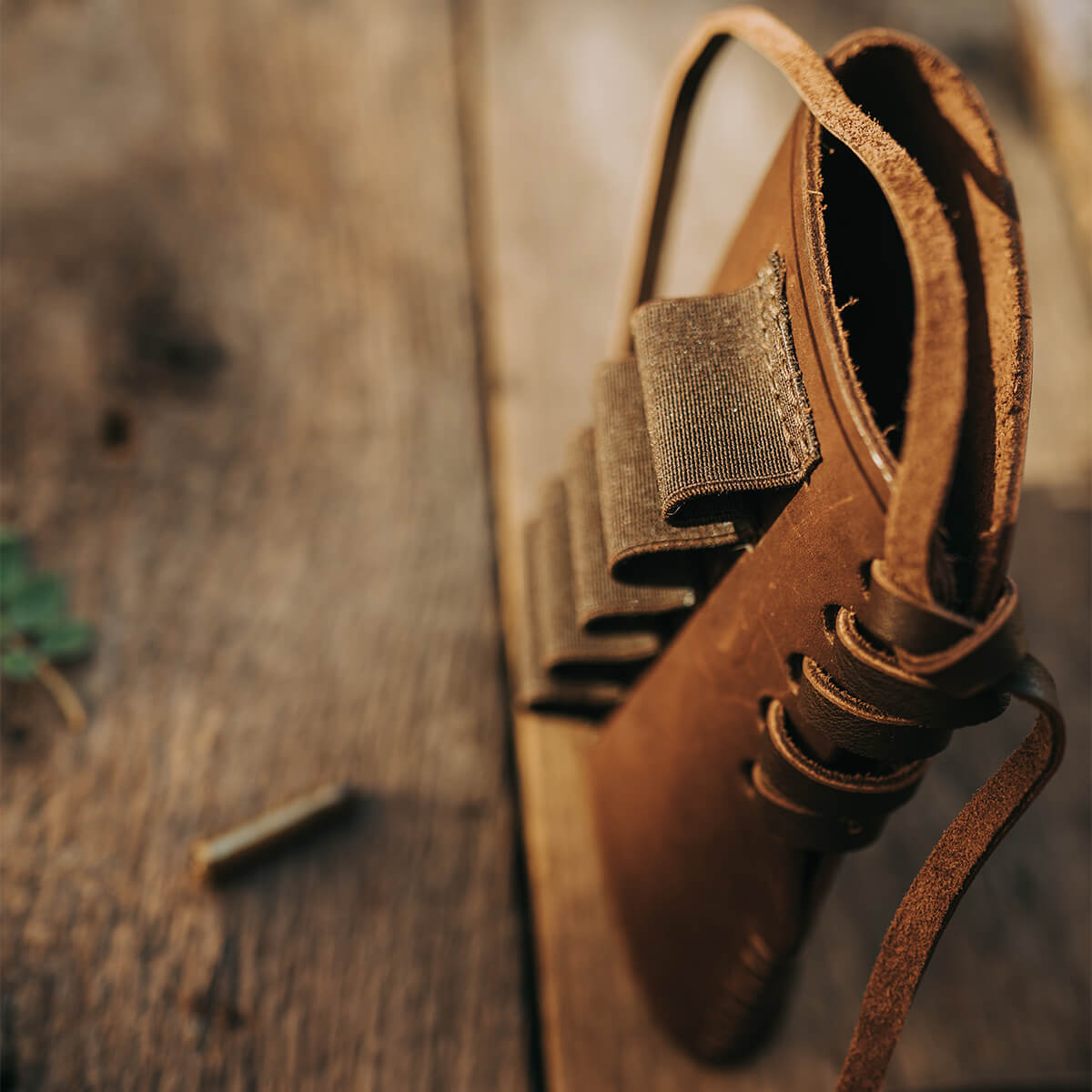 Protectie pat arma din piele cu port munitie elastic pentru 5 cartuse cu alica.