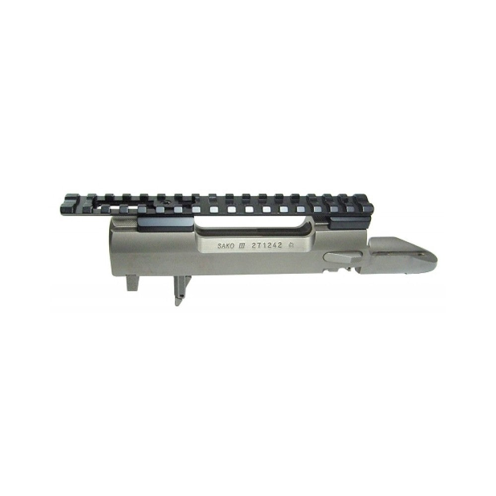 Aceasta varianta dintr-o bucata este mult mai buna decat varianta din 2 bucati deoarece ne permite sa apropiem sau sa departam luneta fata de ochi pana avem distanta focala ideala.Permite de asemenea montarea unui punct rosu de tip red dot la distante diferite fata de ochi.Nu impiedica si nici nu agata ejectarea tubului gol. Produsa in Germania.