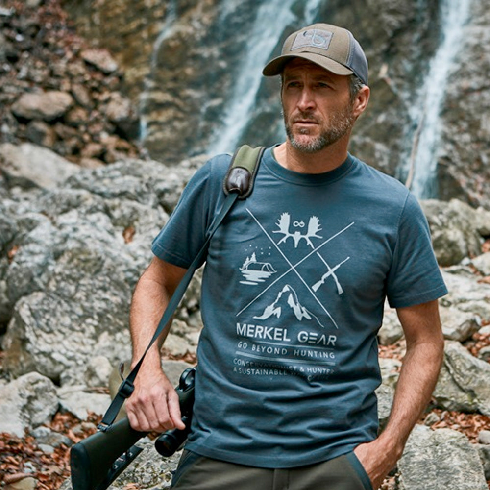 Tricou Merkel Gear Cross Hunting Tricou de bumbac de calitate premium cu imprimeu frontal. Logo subtil pe...