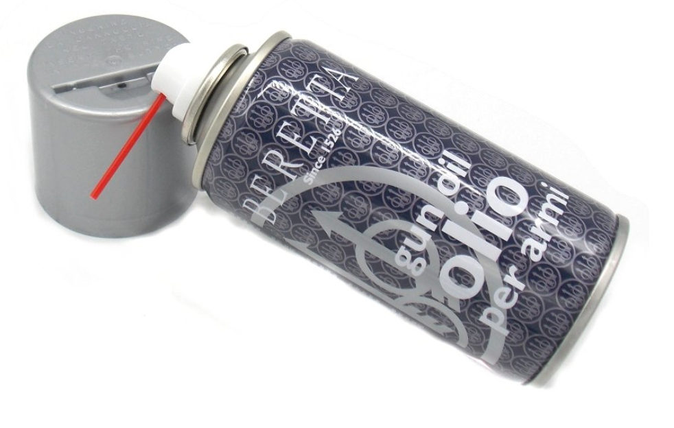 Ulei Beretta sub forma de spray 125 ml.Formeaza un film protector pe suprafetele din metal si impiedica coroziunea; curata si lubrifiaza. Actioneaza impotriva rezidurilor de pulbere, plumb, cupru si tombac. Nu patrunde in fisurile foarte fine, dizolva depunerile vechi, curata, intretine si conserva toate partile armei inclusiv patul de lemn.